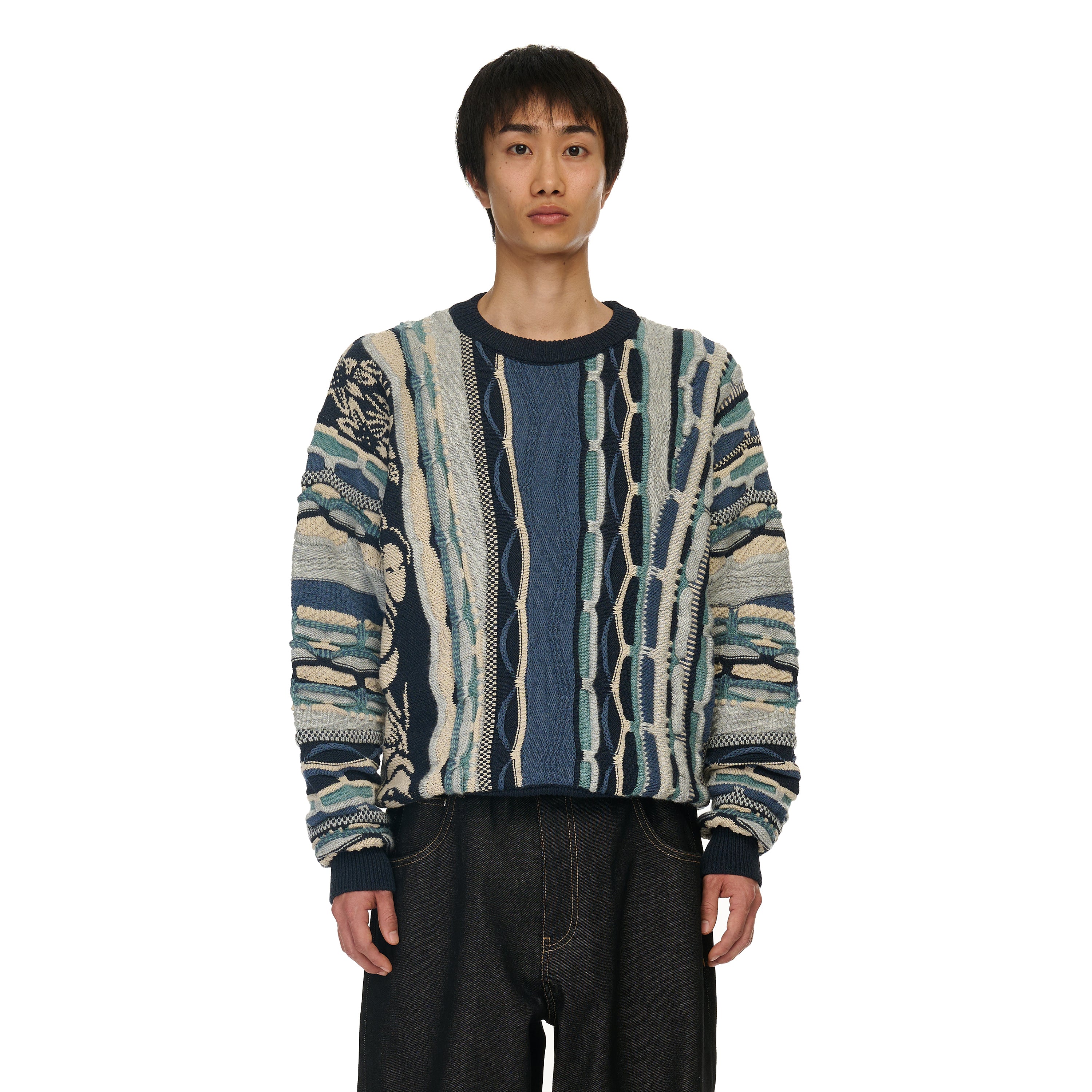 80% cotton 10% acrylic 5% wool 5% polyamide / heavy weight knit / jacquard on front and back / cropped fit / fits true to size