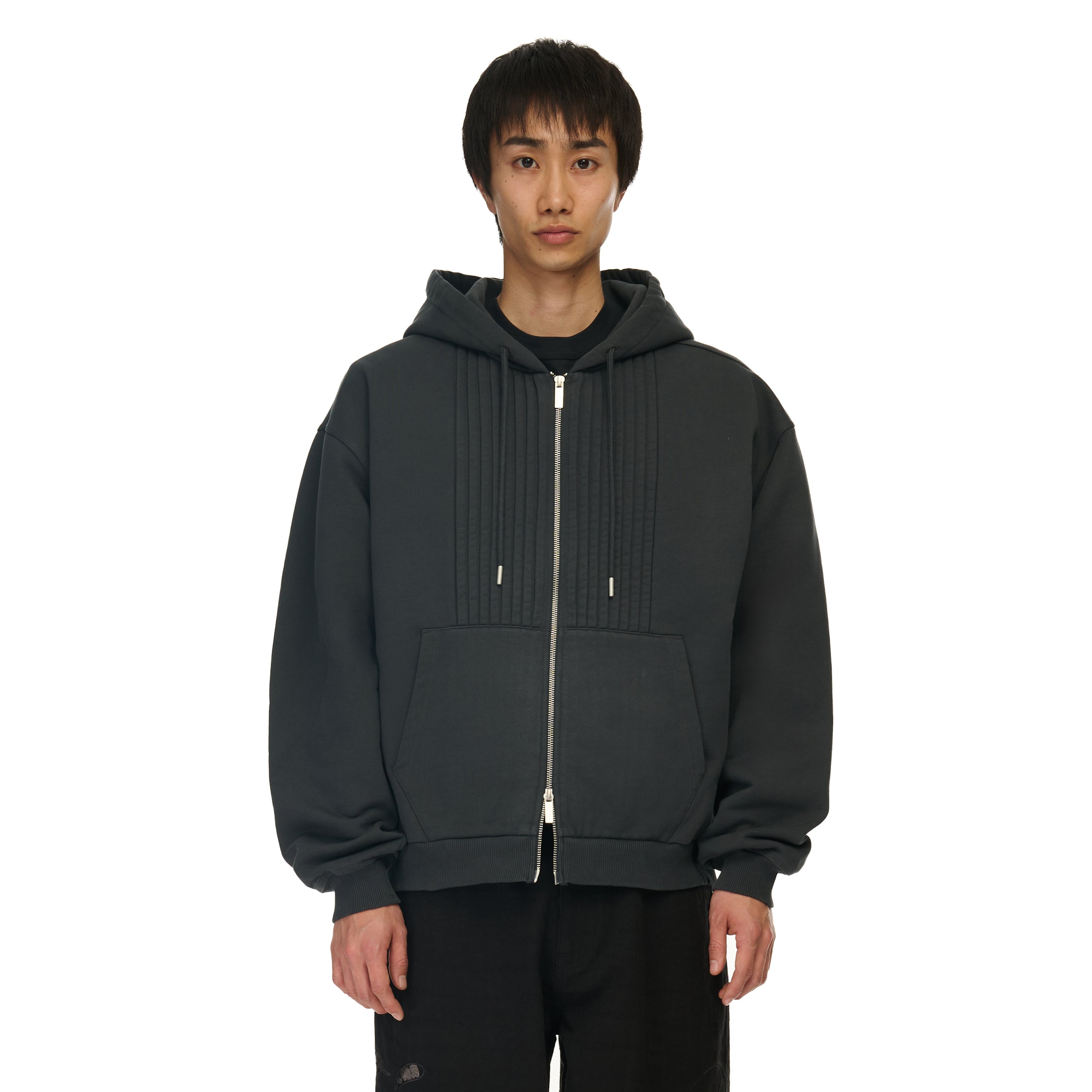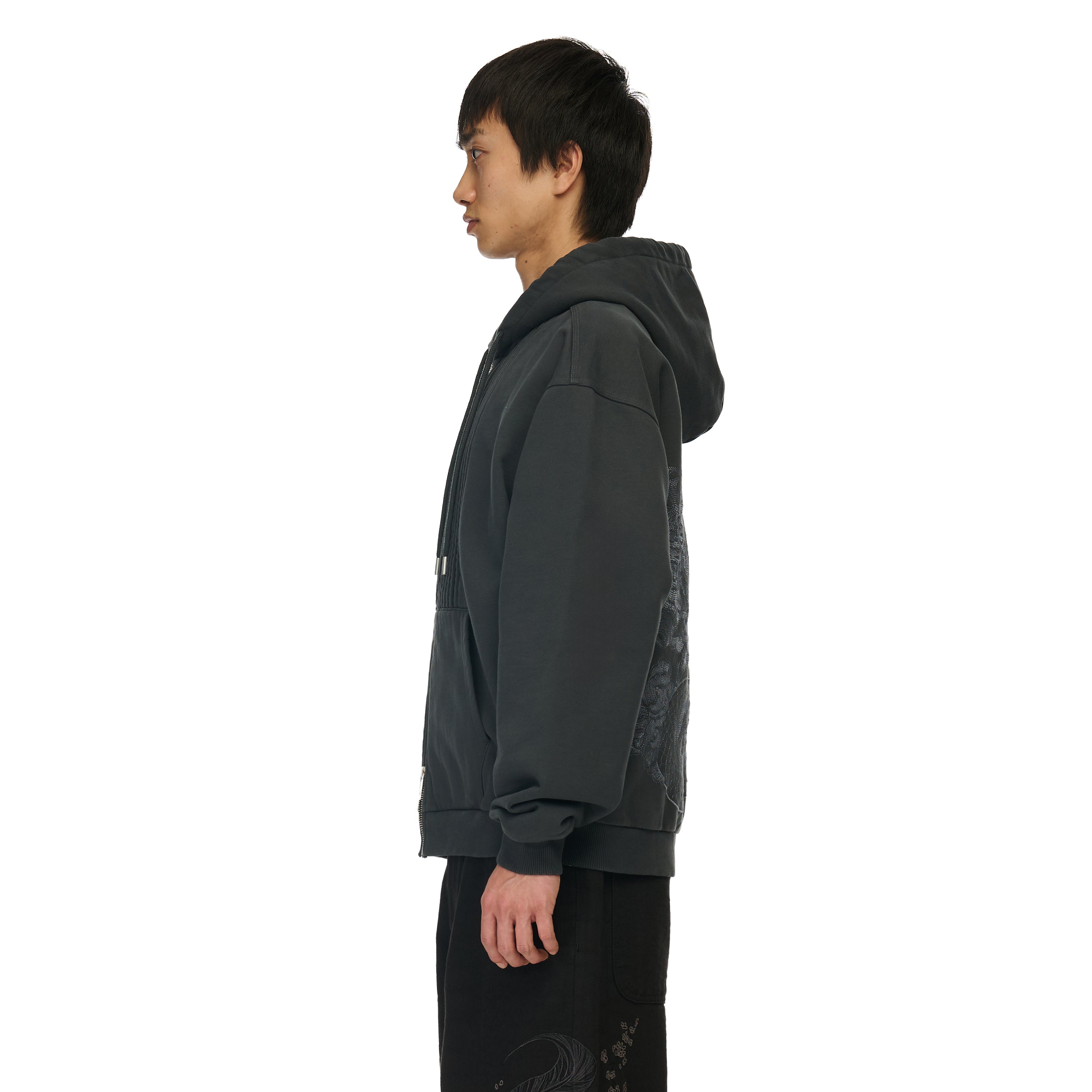 460gsm / 100% preshrunk cotton / ribbing on front / embroidery on back / with double-slided YKK zipper / with metal cord closures / fits true to size